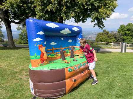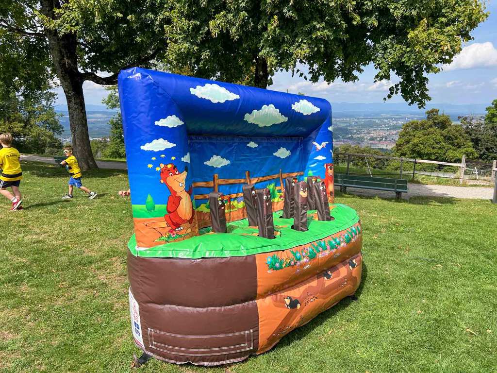 Die aufblasbare Konstruktion macht das Spiel nicht nur sicher und besonders attraktiv, sondern ermöglicht auch den flexiblen Einsatz auf Events, in Einkaufszentren oder bei Sporttagen. Ob als Einzelspiel oder in kleinen Wettkämpfen – das Maulwurfspiel begeistert Kinder und Erwachsene gleichermassen und bringt Action, Lachen und Wettbewerb zusammen. Ideal für jede Veranstaltung, die Tempo und gute Laune braucht!